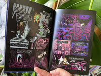 32 pages, full color. Each copy comes with a signature and sketch by the author, Iris Jay, as well as a link to a digital PDF download. CW: explicit lesbian sexual content, public sex, group sex, mind control and a whole lot of cosmic body horror. Not intended for readers under 18.